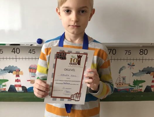 Nagy örömmel osztjuk meg, hogy Horváth Ákos, iskolánk 2. c osztályos tanulója 3. helyezést ért el a „10 város a Magyar Sakkozásért” amatőr sakkverseny Sakkpalota csoportjában. A verseny Mórahalmon volt 2025. november 7-én. Ákos kitartása, koncentrációja és sportszerű játéka példaértékű. Gratulálunk ehhez a szép eredményhez, és további sikereket kívánunk a sakktáblán!