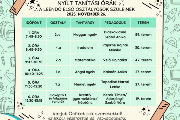 Iskolánkban november 4-én került sor az első Szülők Akadémiája programunkra, ahol Dr. Pongó Tamás, PhD egyetemi adjunktus tartott rendkívül tartalmas és inspiráló előadást. A rendezvény a digitális világ működésének megértésére, valamint a tudatos és biztonságos internethasználat támogatására fókuszált. Megtanultuk például, hogyan alakítja személyre a közösségi média a tartalmakat a szűrőbuborékokon keresztül, és azt is, milyen…