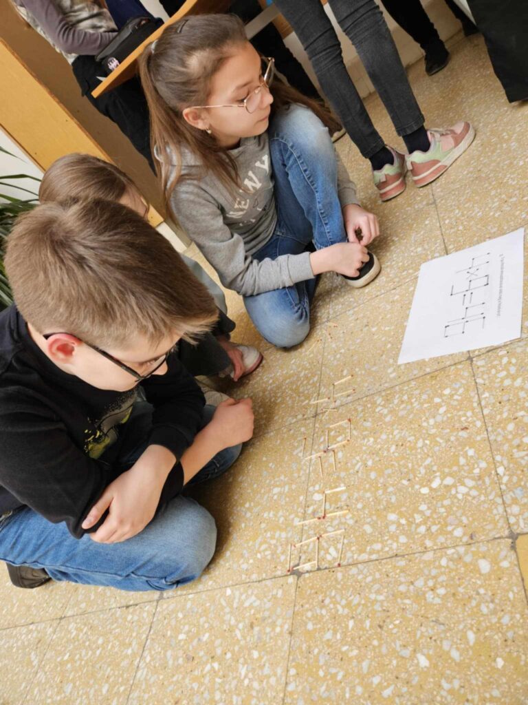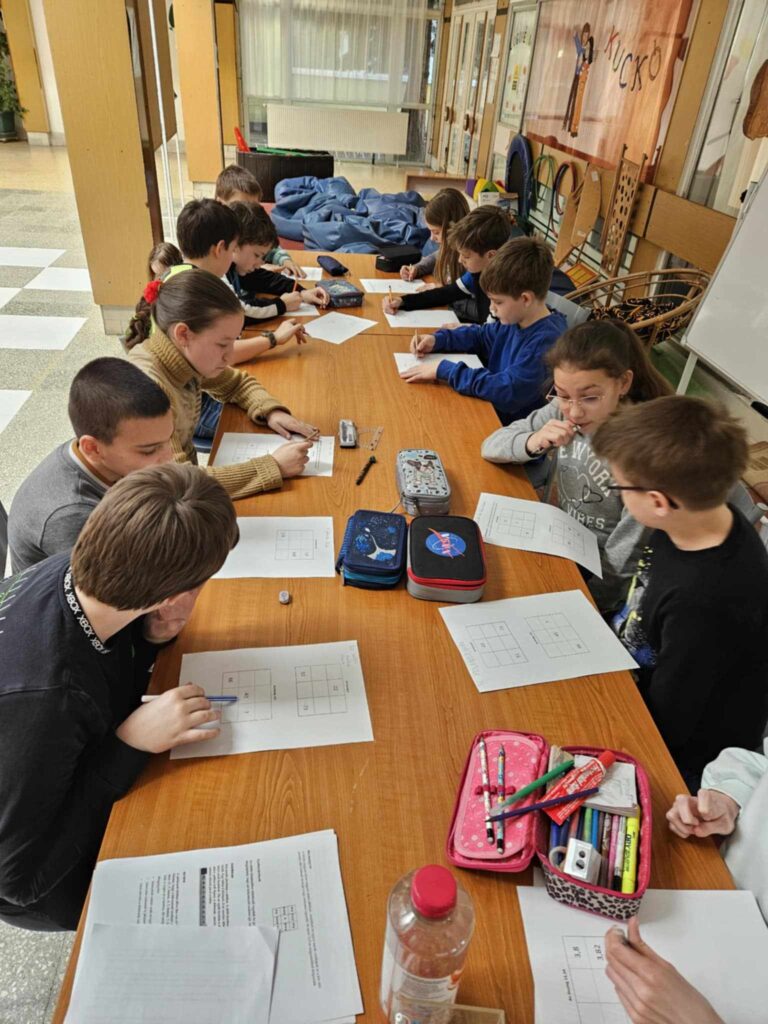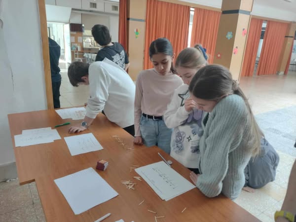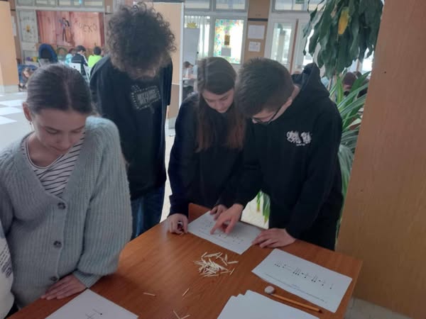 Ennek örömére hívtuk felsős diákjainkat egy játékos matematika csapatversenyre, amin 10 lelkes csapat vett részt március 18-án, kedden a nyolcadik órában. A legügyesebb csapat az 5.b-ből Vajna Emma, Józó Félix, Huber Zsombor voltak. Őket követte a 6.a csapata: Domonkos Rita, Horváth Lili Anna és Bogáncs Gyula Zalán. Harmadikként végzett szinte fej-fej mellett a második helyezettekkel az 5.a egyik csapata Fázer Lara és Gulyás Amy részvételével