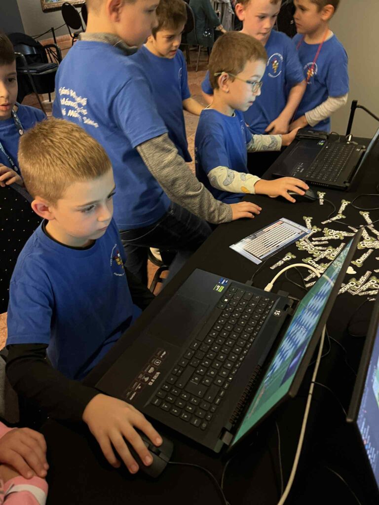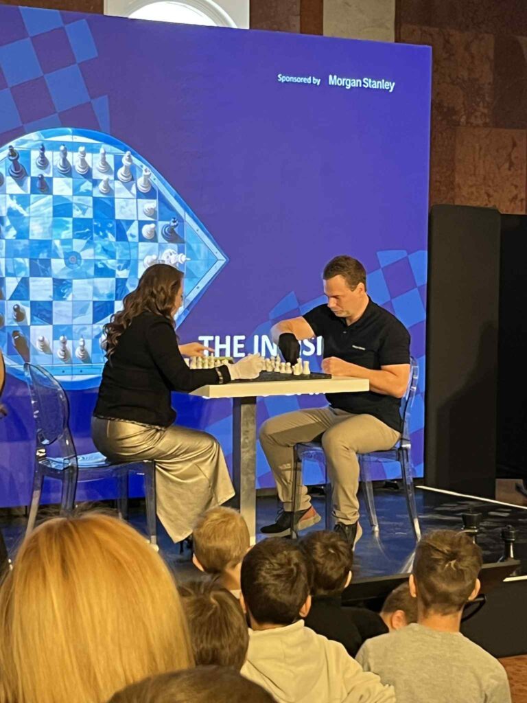 A fiúk belemerültek az online sakk világába is. Megcsodáltuk,ahogy a Harry Potter-stílusú sakktábla életre kelt, a bábuk maguktól mozogtak. Láthatalan sakkjátszmát is megfigyeltünk,ahol Polgár Judit és egykori csapattársa is világossal játszott a táblán.