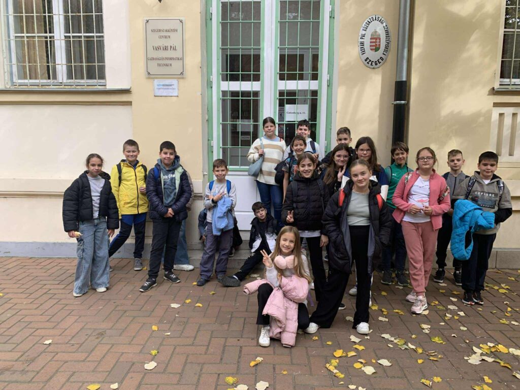 Az idei tanévben ismét lehetőségünk nyílt arra, hogy egy tanítási napot kizárólag pályaorientációs célokra fordítsunk. Iskolánk október 18-án tartotta meg pályaorientációs napját, amelynek során diákjaink különféle helyszíneken és programokon keresztül ismerkedhettek meg a szakmák világával. A rendezvény célja az volt, hogy tanulóink tapasztalatokat szerezzenek a munka világáról, és könnyebben tudjanak tájékozódni a későbbi pályaválasztás során.Az alsó tagozatos osztályok számára intézményünkben a Kossuth Zsuzsanna Technikum és Szakképző Iskola, a Nemzeti Agrárgazdasági Kamara és a Szegedi Rendőrkapitányság tartott érdekes, interaktív előadásokat. Emellett a gyerekek játékos projektek és beszélgetések keretében ismerkedtek meg a különböző foglalkozásokkal. Több osztály külső helyszínekre is ellátogatott: volt, aki a Rádió 88 stúdiójába, cukrászdába, vendéglátóegységbe, a Szegedi Nemzeti Színházba, vagy az SZKT trolitelepre kapott betekintést.„Kertész leszek, fát nevelek…” – hangzik József Attila ismert versének első sora.A 3.a és 3.b osztály tanulói is a költő nyomdokaiba léptek:a pályaorientációs nap keretében ellátogattak a Mesi Virágkertészetbe, aholsaját kezűleg ültethettek el cserépbe egy-egy tő árvácskát, amelyet későbbhaza is vihettek emlékül.A dolgos délelőtt után jólesett a megérdemelt pihenés és egy finom sütemény a Mesi Cukrászdában. A gyerekek élményekkel, új ismeretekkel és jókedvveltértek haza erről a különleges napról.Az 5. évfolyam tanulói az Alföldi ASZC Fodor József Élelmiszeripari Technikum és Szakképző Iskolában, valamint a Szegedi SZC Vasvári Pál Gazdasági és Informatikai Technikumban ismerkedtek a különböző képzési lehetőségekkel és szakmákkal.A 6. évfolyam diákjai két helyszínre látogattak el: egyik csoport Makóra, az Alföldi ASZC Galamb József Mezőgazdasági Technikumba, a másik pedig az Alföldi ASZC Bedő Albert Erdészeti Technikumba, ahol a mezőgazdasági és erdészeti szakmák világába nyerhettek betekintést.A 7. évfolyam két osztálya az Alföldi ASZC Gregus Máté Mezőgazdasági Technikum és Szakképző Iskolába kirándult, ahol gyakorlati bemutatókon és szakmai előadásokon vettek részt.A 8. évfolyam tanulói közül a 8.a osztály az Aradi Tanya és Élménybirtokra látogatott el, míg a 8.b osztály a MÁV Múzeum Vasúttörténeti Alapítvány programján vett részt. Ezt követően ellátogattak a Gál Ferenc Egyetem Technikum, Szakképző Iskola, Gimnázium és Kollégium új épületébe is, ahol egy részletes tájékoztató előadást hallgathattak meg az intézmény képzési kínálatáról.A pályaorientációs nap jó hangulatban telt, diákjaink sok élménnyel és új ismerettel gazdagodtak. A különböző programok, előadások és látogatások révén szélesebb képet kaphattak a továbbtanulási lehetőségekről és a munka világáról, így iskolánk ismét hozzájárulhatott tanulóink jövőbeli életútjának formálásához.